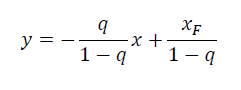 (q는 공급원료의 상태를 나타내는 인자라고 생각하면 되는데, 포화증기인 경우 0, 포화액체인 경우 1로 표현한다)