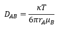 Dab : 용매 B의 묽은 용액에서 용질 A의 확산도, k : 볼츠만상수, T : 절대온도, rA : 용질 A의 분자반지름, uB : 용매의 점도