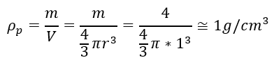 물체의 운동 방향은 구체와 액체의 밀도를 비교해보면 된다. 구의 밀도의 계산식은 아래와 같다.