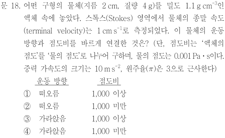 이 문제는 처음 시험장에서 봤을때 굉장히 어려워보였다. 이미 앞에서 시간을 많이 쓴 상황이라 시간의 압박도 상당했기에 푸는데 시간이 오래 걸릴 것 같아 문제만 쓱 보고 그냥 넘어갔던 문제 중 하나이다. 여유가 있었다면 충분히 풀 수 있었던 문제라고 생각한다. 개념들은 이미 문제에서 많이 나왔던 내용이라 생소하진 않다. 다만 보통 종말속도는 아래로 떨어지는 경우가 대부분인데 이 문제는 위로 올라가는 종말속도라 이것만 체크하고 넘어가면 될 것 같다.